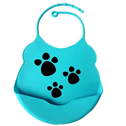 RONGTONGDA 防水ベビービブ、幼児 よだれかけ 防水 食事 エプロン スタイ カートゥーン模様でおもしろ ベビー ビブ 赤ちゃんシリコン ゴムで使い安い 抜群 無毒性、安全 洗える (ブルー)