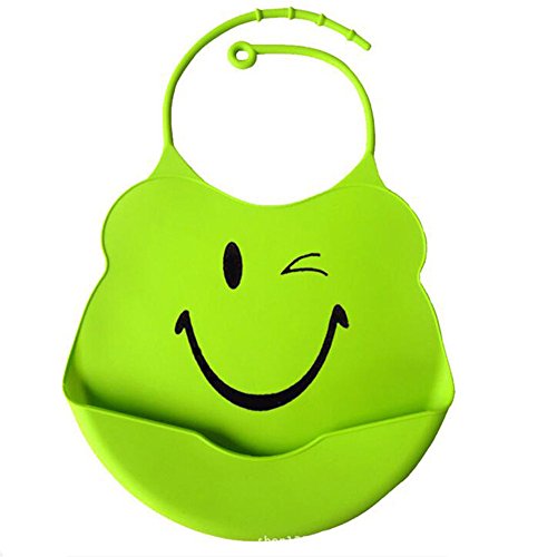 RONGTONGDA 防水ベビービブ、幼児 よだれかけ 防水 食事 エプロン スタイ カートゥーン模様でおもしろ ベビー ビブ 赤ちゃんシリコン ゴムで使い安い 抜群 無毒性、安全 洗える (グリーン)