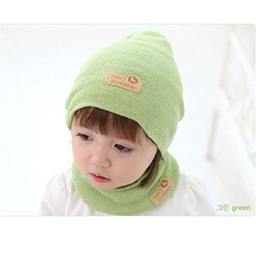 RONGTONGDA 選べる4色 ニット帽 & マフラー ニット帽子 ベビー キッズ 赤ちゃん 子 子供 用 かわいい 防寒 防風 (グリーン)