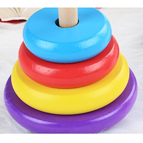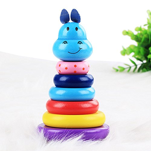 キュート子動物木製タワーとカラフルな木製リングStacked One After Another Baby知的おもちゃ