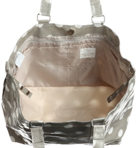 外出の時のママの大荷物を、キチンと整理して入れられる、ウレシイ機能満載の、Mammy ROO(マミールー) マザーズバッグです。Lサイズのオムツも入るポーチと、オムツ替えシート付き。便利なサイドポケットは抗菌消臭効果あり。キュートなドットプリントも◎です。◆トートバッグsize高さ30×幅35〜55×奥行20cm(バッグの形が台形になっておりますので、口部分が下部分より少し広くなっています。)持ち手内周:64cmショルダー内周:120〜167cm(調節可、取り外し可)外ポケット:縦14×横13cm×2個サイドポケット:縦15×横20cm(ファスナー付) 内ポケット:縦22×横33cm(ファスナー付)縦19×横24cm、縦19×横26cm縦19×横24cm、縦10×横11cm、縦19×横14cm◆ポーチsize高さ15×幅21×奥行8cm持ち手内周:36cm外ポケット:縦10×横21cm 内ポケット:縦9×横20cm◆オムツ替えシートsize広げた場合/横45×縦68cm畳んだ場合/直径5×長さ22.5cm重さ:800g(バッグのみ600g)◆素材●バッグ、ポーチ外側/綿(EVAラミネート加工)裏地/ポリエステル●シートシート部分、裏地/ポリエステルテープ部分/綿(EVAラミネート加工)※サイドポケットは、消臭抗菌加工。※A4サイズの書類が入