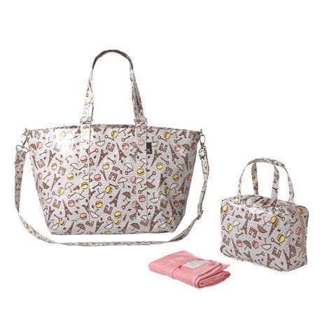 ・バッグと同柄の持ち運びに便利なハンドル付ポーチとコンパクトになるオムツ替えシートをセット