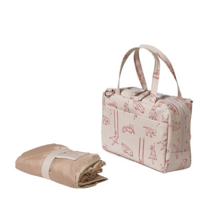 ・バッグと同柄の持ち運びに便利なハンドル付ポーチとコンパクトになるオムツ替えシートをセット
