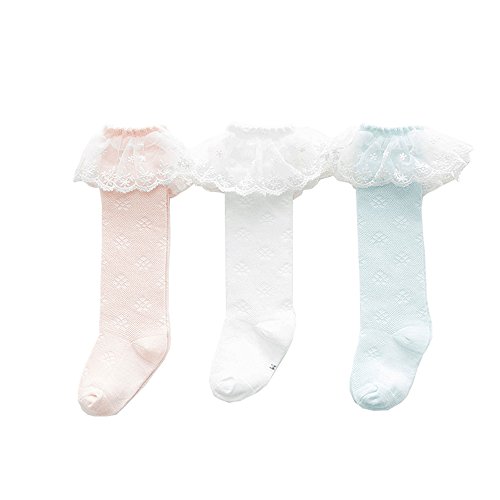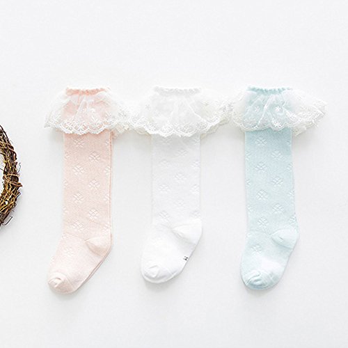 女の赤ちゃん 新生児 レースソックス ホワイト/ピンク/ライトブル ー コットンソックス 3つの組