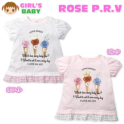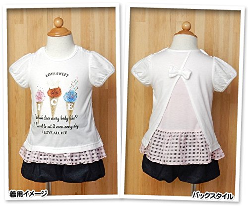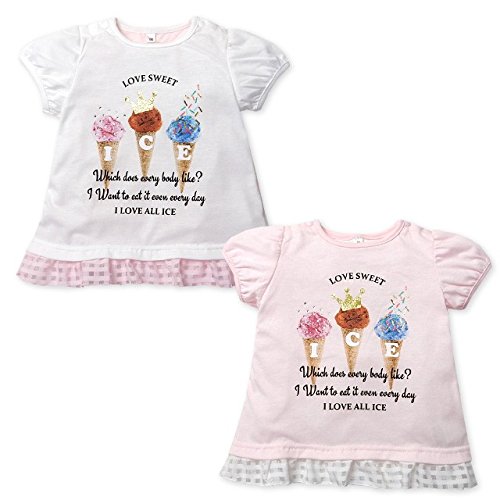 (ピンク/90cm)ベビー服 女の子 Tシャツ 半袖 アイスプリント ストーン装飾 パフスリーブ 格子柄 オーガンジー フリル バック切替 女児 ベビー