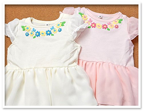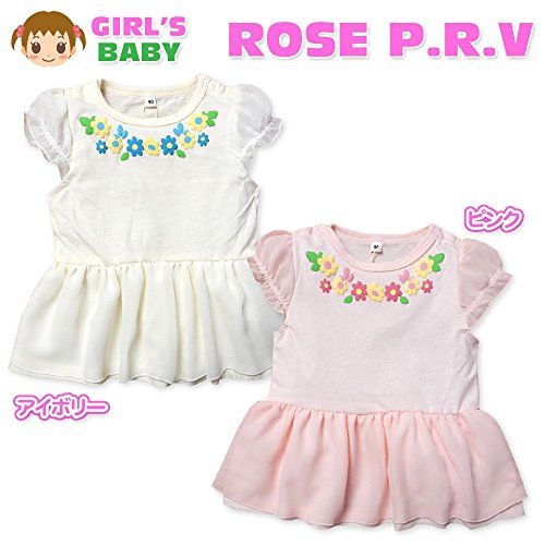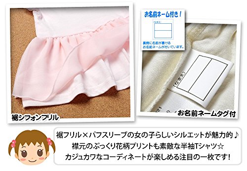 (アイボリー/90cm)ベビー服 女の子 Tシャツ シフォン切替 パフスリーブ 裾フリル 花柄 発泡プリント 女児 ベビー