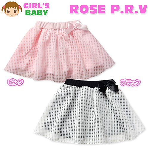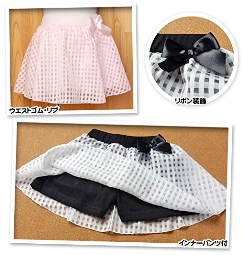 (ブラック/80cm)ベビー服 女の子 スカパン スカート ボトム 格子柄 オーガンジー リボン装飾 インナーパンツ付 ウエストゴム 女児 ベビー