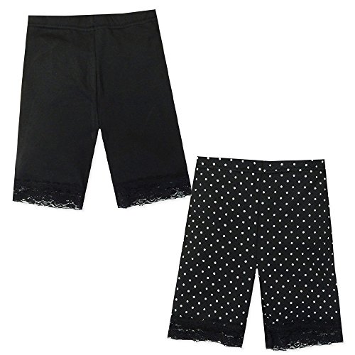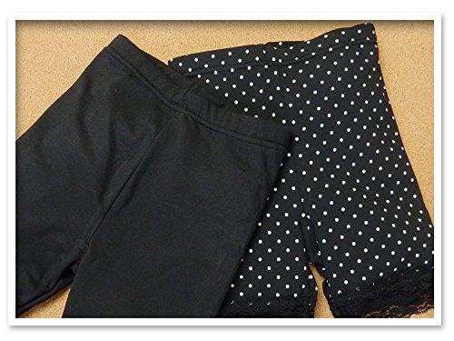 (ドット/90cm)子供服 女の子 レギンス ボトム 吸汗速乾加工 裾レース 無地 ドット 女児 ベビー
