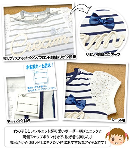 - ・ロゴプリント ・テールカット ・リボン装飾 ・レース袖 ・刺繍ロゴ ・ボーダー ・子供用 ・女の子