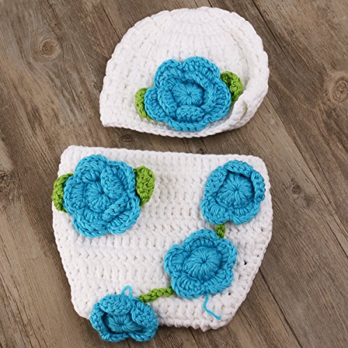 アイテムは、0-6ヶ月の赤ちゃんに適します。素敵な美しい漫画花スタイル赤ちゃんビーニー帽子服のセットです。環境にやさしい、柔らかい毛糸、着心地の良いの誕生日やパーティで赤ちゃんに適します。その上、それはまた新生児の素晴らしい写真小道具として機能できます。