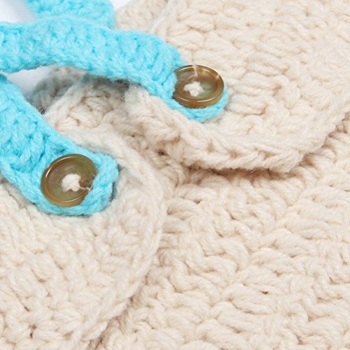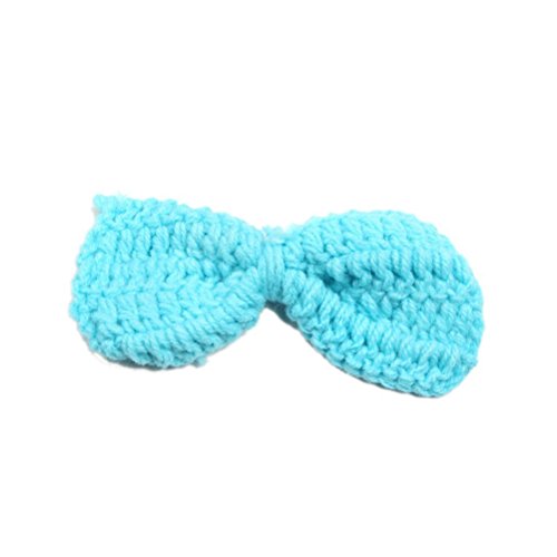 1 * かわいい蝶結びスタイル赤ちゃん新生児手編みかぎ針編み帽子コスチューム赤ちゃん写真小道具セット (ブルー)