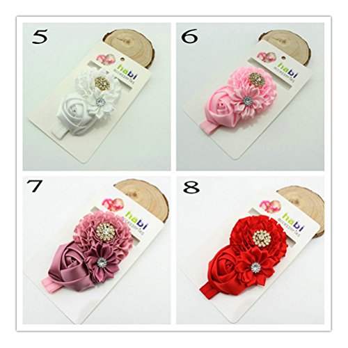 アイテムは 8 個入主にリボンと弾性バンド材料から成っている異なる色で赤ちゃん女の子ヘッドバンドのセットです。ほとんどの女の赤ちゃんに適しています。可愛くて魅力的な理想的に装飾としていくつかの甘いバラの花とラインス トーンを採用します。その上、あなたの赤ちゃんの素晴らしい写真の小道具としても機能します。
