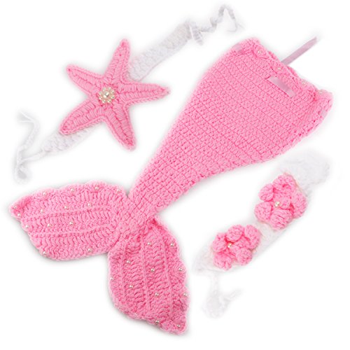 ROSENICE 赤ちゃん 新生児 手編み 衣装 人魚スタイル 写真小道具セット (ピンク)