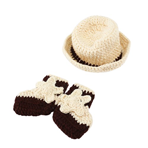 アイテムが素敵なカウボーイ スタイル赤ちゃんビーニー帽子とブーツは、0-3ヶ月赤ちゃんに適します。それは、ソフト編み綿で手編みし、弾性と通気性のあるデザイン、快適な着用します。その上、それはまたあなたの新生児や乳児の素晴らしい写真のプロップとして機能できます。