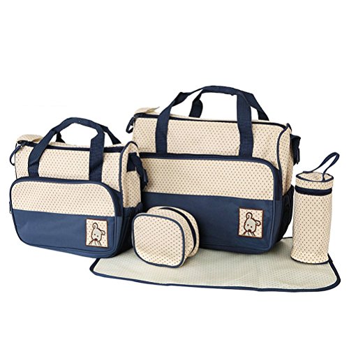 - 5-1 の多機能ミイラ バッグ トートバッグ セット内容: 大きなバッグ、小さいバッグ、断熱哺乳瓶ホルダー、オムツ交換パッドと小さな食料品の袋。