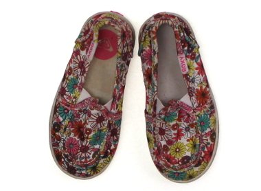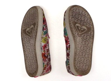 実際のサイズ表記は7です。全体的に使用感があります。靴底も減りがありますが、可愛らしいデザインですので、つっかけやビーチなどすぐ汚れそうな場所にいかがでしょうか。