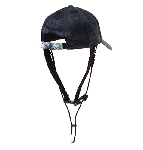 キャップタイプのシンプルなデザインのアクティビティー向きのサーフハット。あご下で留められるバックルベルトやドローコード付きで激しい運動時でも脱げる心配がありません。バイザー裏やバックベルトのパターンプリントがアクセントになっています。素材1:ポリエステル100% 素材2:メッシュ部分 ナイロン100%