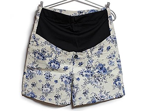 マタニティパンツ/麻混ショートパンツ/ショートパンツ/花柄デザイン/Lサイズ/【L】/アジャスターボトム/ボトムス/a.i.n/吸収速乾/coolpass/春物/新品/妊婦服/妊婦用品