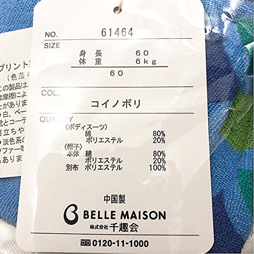 なりきりウェアこいのぼり 2点セットです。 こいのぼりのデザインがとってもキュートな 着ぐるみオール&帽子のセットになります。 パイル地なので肌触りがいいです。 初節句にオススメです!いかがでしょうか? ベルメゾンのお品です。 ……………………………………………………………………………………………… サイズ: 【60】身長 60cm・体重6kg