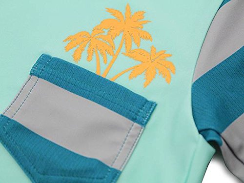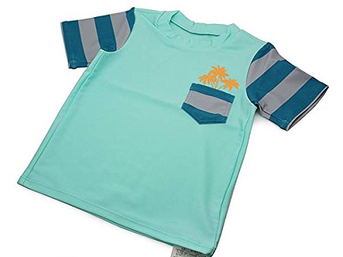 キッズ用のラッシュガード110新品です。 夏らしいでデザインで目を引きます。 左胸部分のヤシの木のプリントが可愛いです。 お子様の日焼け防止に… おススメです(*^^)v ……………………………………………………………………………………………… ◆サイズ【110】 : (タグ表記)胸囲53~59cm (おおよそ平置きで)着丈37cm、身幅28cm