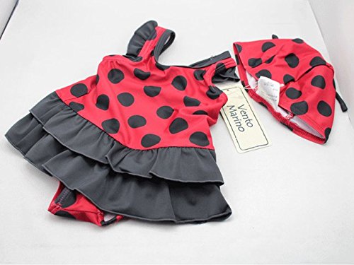 水着/ベビー/スイムウエア/70cm/赤ちゃん水着/てんとう虫水着/てんとう虫/70サイズ/赤/レッド/昆虫柄/帽子付き/体重9キロ/身長70cm/Vento Marino/セパレート/ベビースイムウエア