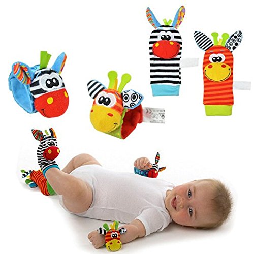 - 年齢範囲0 – 12か月、2手首ガラガラ+ 2足ソックス+無料のギフトパッケージ1パックで