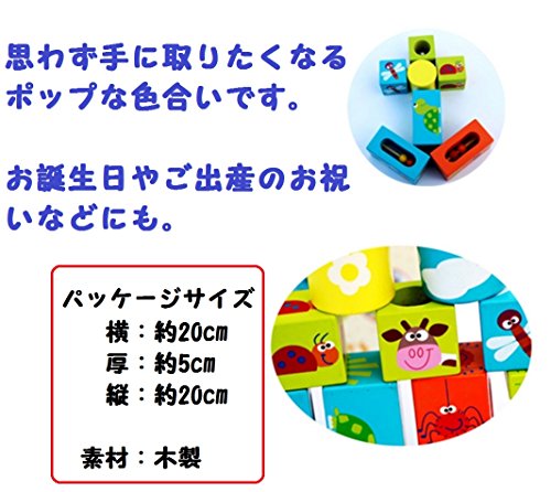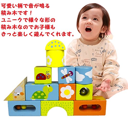 ROZZERMAN 積み木 12ピース 20×20cm 木製 知育玩具 音 木のおもちゃ 出産祝い 木製玩具 1歳 2歳 3歳 男の子 女の子 誕生日 プレゼント n88