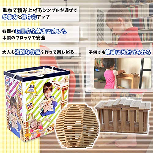 - ■大容量300個の優しい木目のナチュラルカラーの木製ブロックです。