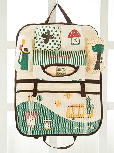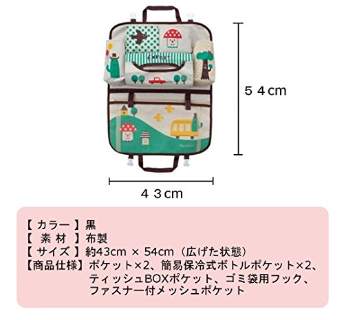 • 【商品仕様】 ポケット×2、簡易保冷式ボトルポケット×2、ティッシュBOXポケット、ゴミ袋用フック、ファスナー付メッシュポケット