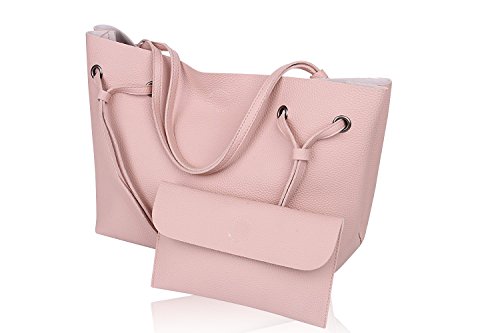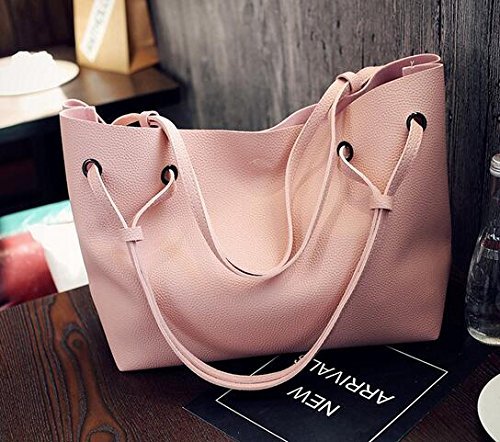 ROZZERMAN ショルダーバッグ トートバッグ 2点セット PU 肩がけ バッグ かばん 鞄 通勤 通学 大容量 g82 (Free, ピンク)