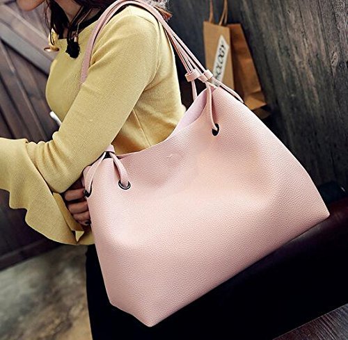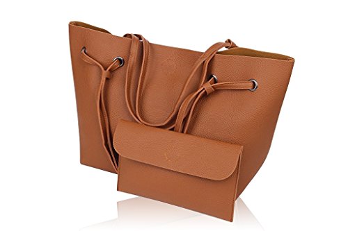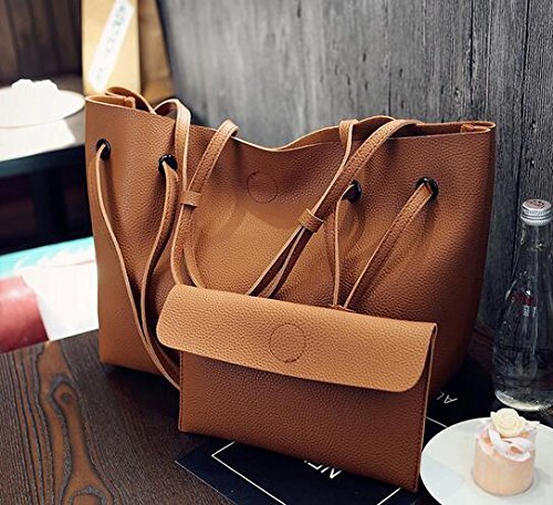 ROZZERMAN ショルダーバッグ トートバッグ 2点セット PU 肩がけ バッグ かばん 鞄 通勤 通学 大容量 g82 (Free, ブラウン)