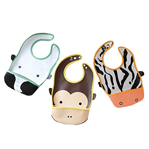 - 防水 スタイ & お食事 エプロン 2 way ビブ かわいい アニマル 柄 3枚 セット