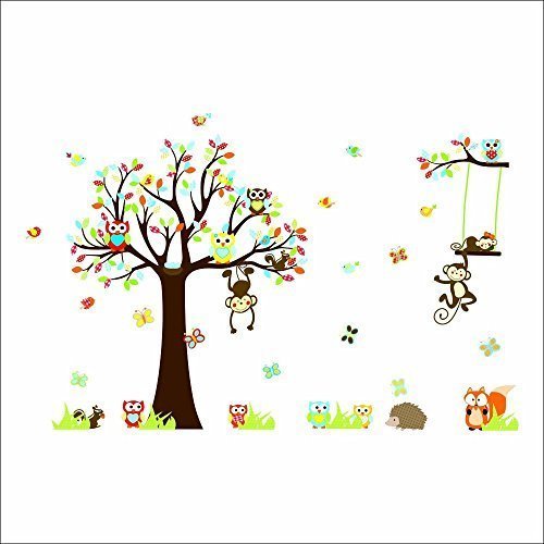 Removable Nursery Wall Art Decor Wallpaper Squirrel Monkeys Owl Tree Kids Room Decorative Peel & Stick Wall Stickers