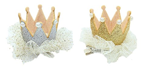 (ロキリフ) ベビー キッズ 用 ミニ 王冠 クリップ 金 & 銀 2点セット ( 誕生日 記念日 寝相アート ゴールド & シルバー )