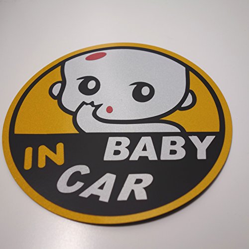 BABY IN CAR 赤ちゃん 乗車中 ( 16cm )( マグネット ステッカー )( イエロー 2 )( 外貼り デザイン )