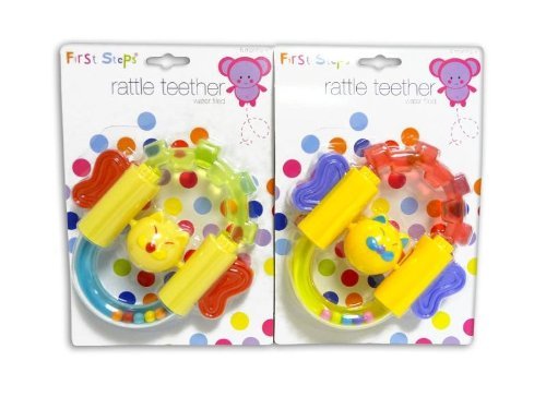 - First Steps Cute Water Filled Rattle Teethers with Spinning Head Perfect for Sore Gums