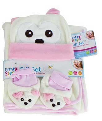 - First Steps Baby Gift Set With Blanket Hat Booties 0months+ Soft Fleece - Owl
