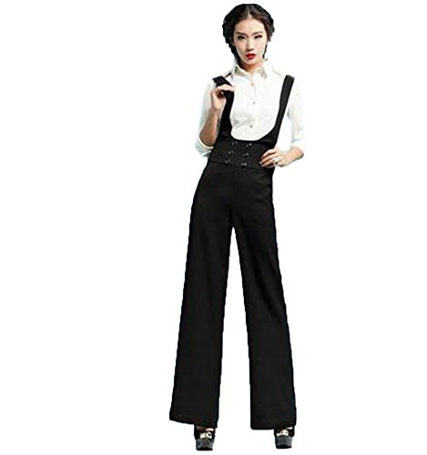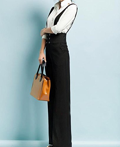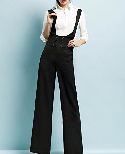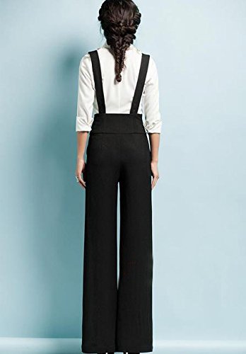 [RSWHYY] レディース サロペット オールインワン オーバーオール サスペンダー カジュアル 春秋 ロングパンツ ガウチョパンツ ハイウェスト 無地 つなぎ服 ゆったり 復古 ブラック XL