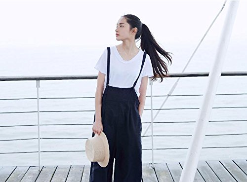 [RSWHYY] レディース サロペット オールインワン オーバーオール サスペンダー カジュアル 春秋 ロングパンツ ワイドパンツ 無地 つなぎ服 ゆったり 九分丈 シンプル 森ガール ネイビー M
