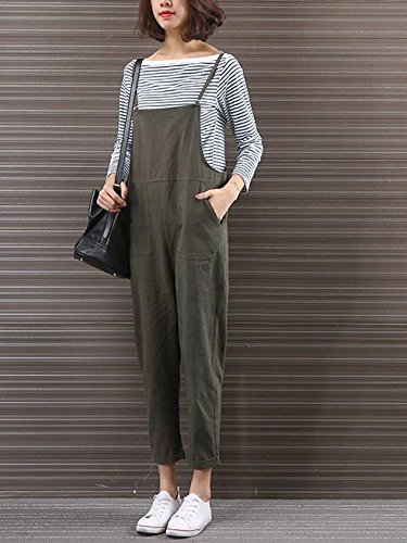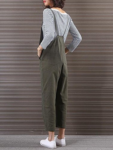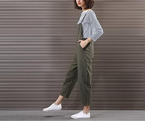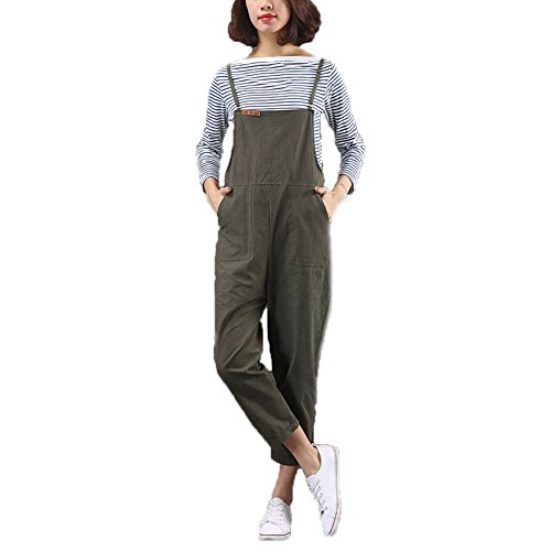 [RSWHYY] レディース サロペット オールインワン オーバーオール サスペンダー カジュアル 春秋 ロングパンツ サルエル 無地 つなぎ服 ゆったり スキニー 九分丈 学院風 グリーン L