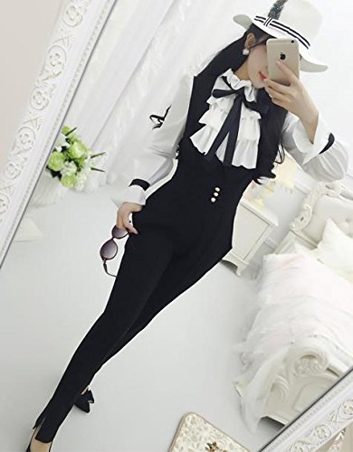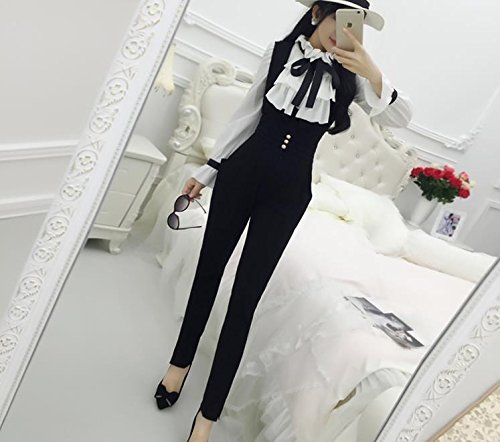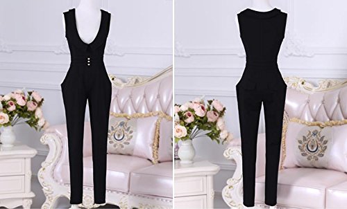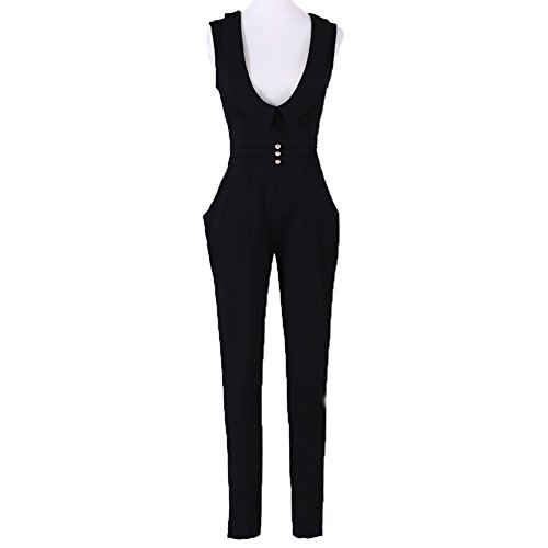 [RSWHYY] レディース サロペット オールインワン オーバーオール サスペンダー カジュアル 春秋 ロングパンツ ハイウェスト スキニー 着痩せ 無地 つなぎ服 ファッション ブラック L