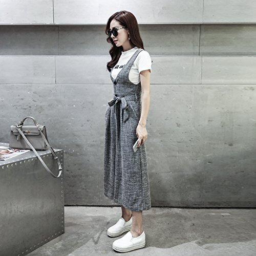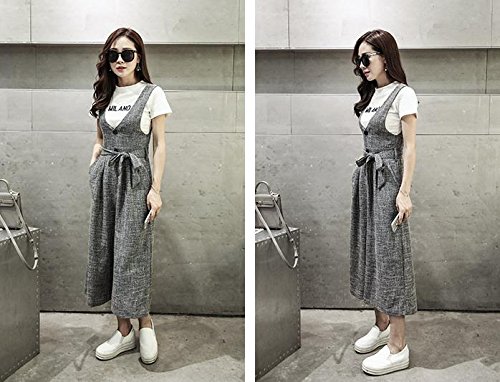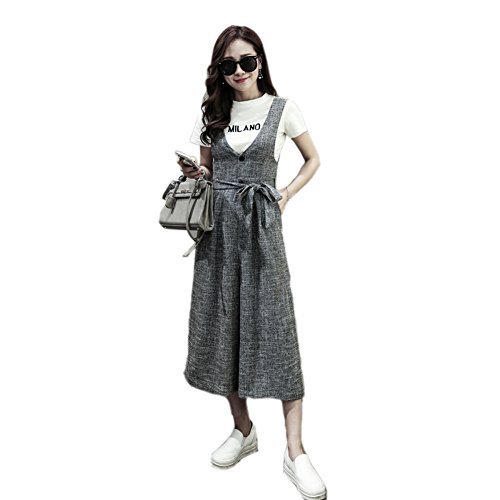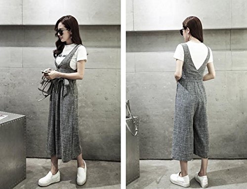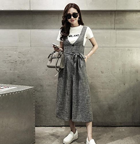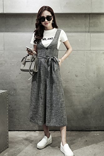 [RSWHYY] レディース サロペット オールインワン オーバーオール サスペンダー カジュアル 春秋 ガウチョパンツ スカーチョ リボン付 つなぎ服 ゆったり 九分丈 修身 着痩せ グレー XL