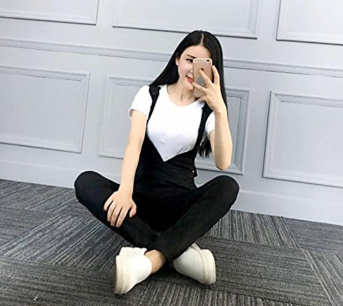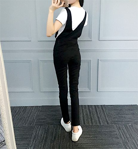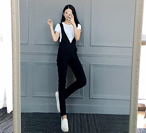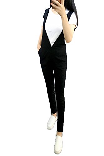 [RSWHYY] レディース サロペット オールインワン オーバーオール サスペンダー カジュアル 春秋 ロングパンツ Vネック スキニー 無地 つなぎ服 着痩せ シンプル ファッション ブラック M