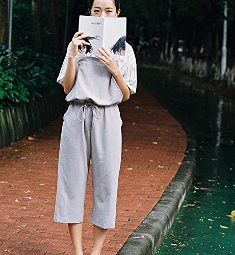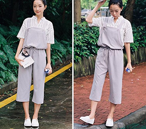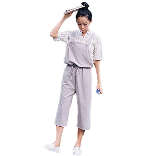 [RSWHYY] レディース サロペット オールインワン オーバーオール サスペンダー カジュアル 春秋 ロングパンツ リボン付き 無地 つなぎ服 ゆったり 七分丈 学院風 森ガール グレー L