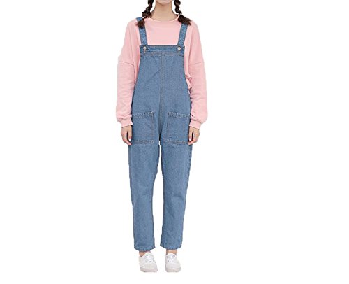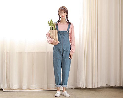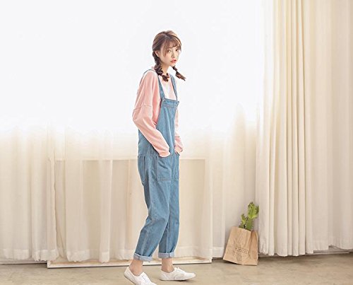[RSWHYY] レディース サロペット オールインワン オーバーオール サスペンダー カジュアル 春秋 デニム ロングパンツ サルエル 無地 つなぎ服 ゆったり 九分丈 BF風 可愛い ライトブルー XL