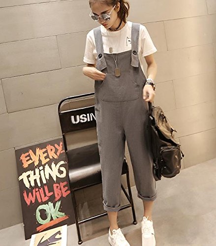[RSWHYY] レディース サロペット オールインワン オーバーオール サスペンダー カジュアル 春秋 サルエル ロングパンツ ワイドパンツ 無地 つなぎ服 ゆったり 九分丈 おしゃれ グレー XL