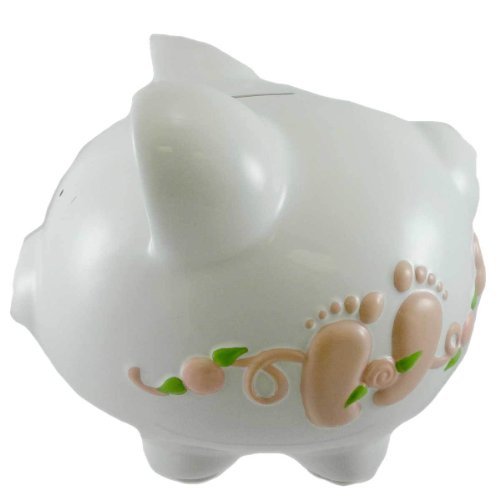 銀行Baby Girl Feet & Bow BankセラミックCeramic Piggy足印刷cr100bgfeet