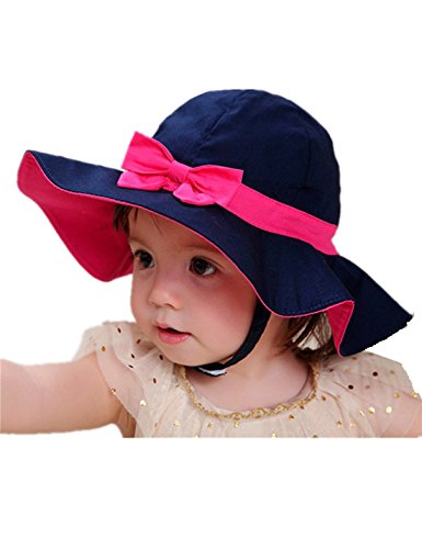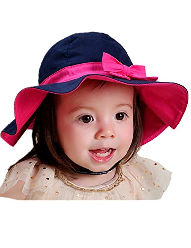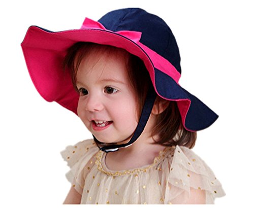 - >可愛いローズレッドのネイビーブルーフロッピー帽子蝶結び、