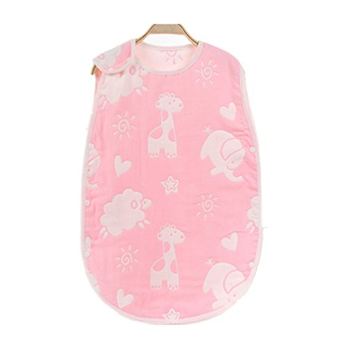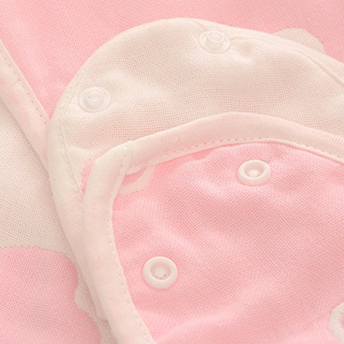 赤ちゃん寝袋ガーゼ100%有機天然綿ベビー寝袋パジャマ6重ガーゼ赤ちゃん寝袋秋と冬の誕生日お祝い (新生児〜2歳, 動物柄 ピンク)
