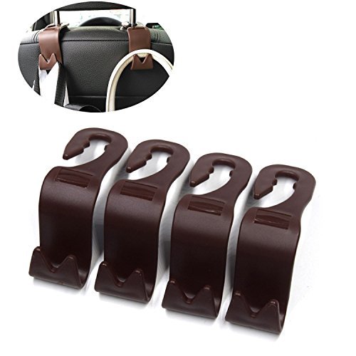 ruisikiou車ヘッドレストフックハンガー、ユニバーサルカーシートバックヘッドレストホルダーフックバッグコートのオーガナイザーホルダー 4 Pack ブラウン RSKO-US-CAR009